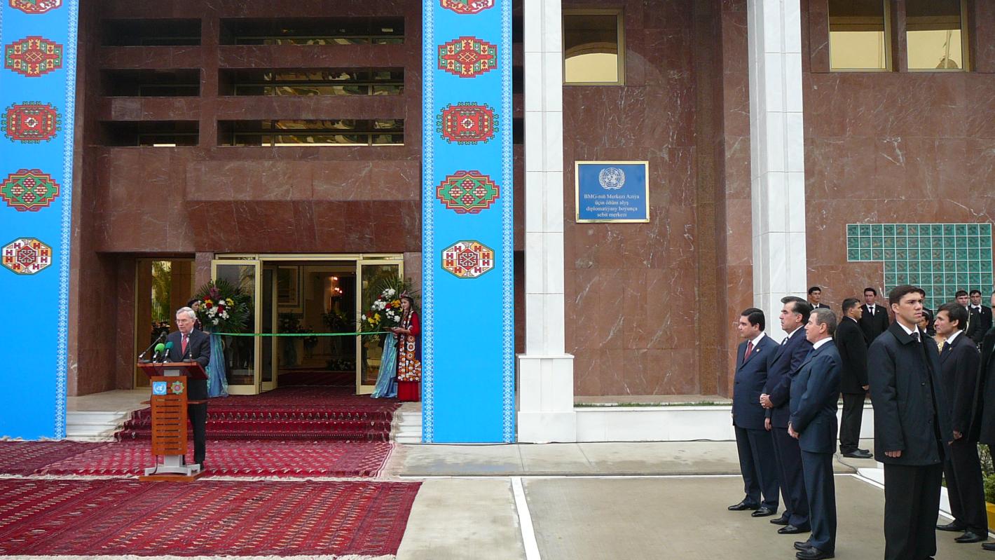 The inauguration of the United Nations Regional Centre for Preventive Diplomacy took place on 10 December 2007 in Ashgabat. While initiating this proposal, the Governments took into consideration the multiple threats that face Central Asia, including international terrorism and extremism, drug trafficking, organized crime and environmental degradation.