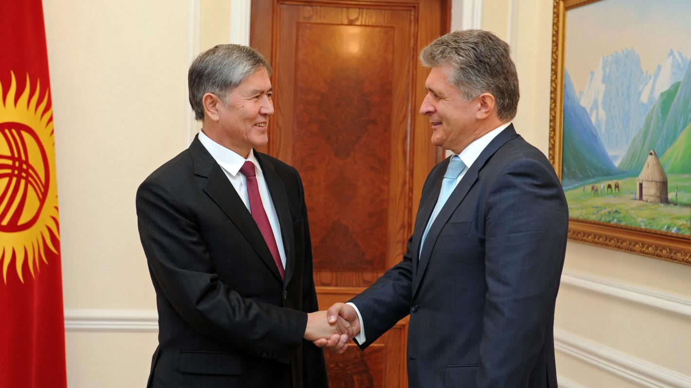 He met with President Almazbek Atambaev, Toraga (Speaker) of the Jogorku Kenesh (Parliament), Asilbek Jeenbekov, Prime Minister Jantoro Satybaldiev, and Minister of Foreign Affairs Erlan Abdyldaev. In Osh, he met with the Governor Sooronbay Jeenbekov, Mayor Melis Myrzakmatov, and the representatives of the ethnic Uzbek community.