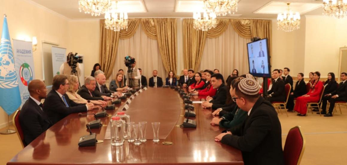 The UN Secretary-General also met with the students of the Preventive Diplomacy Academy, UNRCCA's initiative, aimed at enhancing the role and engagement of the youth from Central Asia and Afghanistan in preventive diplomacy efforts. While sharing their vision on the regional developments and challenges, young people highlighted the importance of the PDA in promoting youth leadership and cooperation among youth across the region.