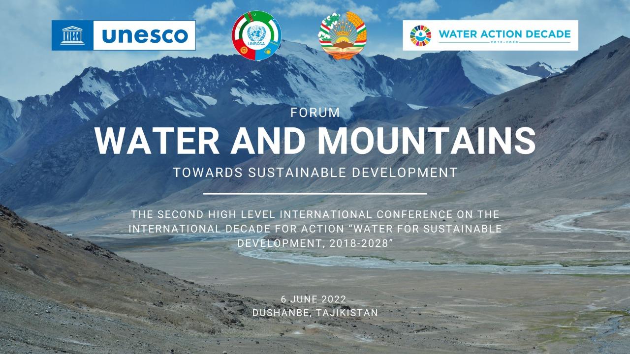 On 6 June 2022, in Dushanbe, Tajikistan, UNRCCA in partnership with the UNESCO and Government of Tajikistan convened a Conference Forum on “Water and Mountains Towards Sustainable Development” within the framework of the second High-Level International Conference on the International Decade for Action “Water for Sustainable Development”, 2018-2028. The event was organised within the framework of the UNRCCA “Strategy in support of cooperation between the states of Central Asia in the field of water, energy, environment and climate for 2022-2025”. The Forum gathered around 350 participants representing governmental institutions, UN agencies, international organisations, scientific circles and academia, and NGOs. The Conference was organised in three panels, - the high-level one, representing views from governments of 5 Central Asian states and IFAS, as well as panel of international experts.