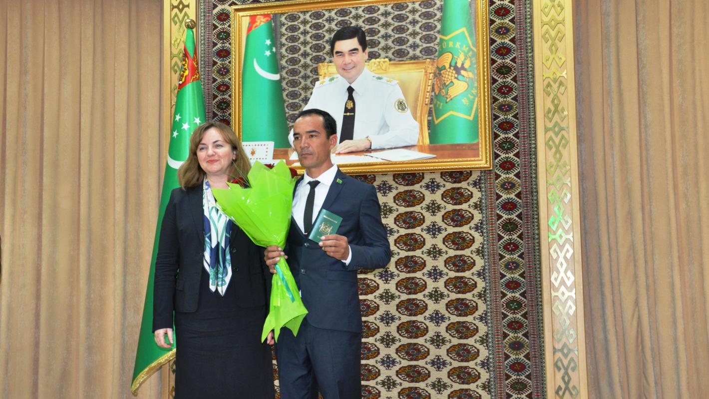 SRSG NATALIA GHERMAN PARTICIPATES AT THE CEREMONY OF GRANTING PASSPORTS TO PERSONS ADMITTED TO THE CITIZENSHIP OF TURKMENISTAN