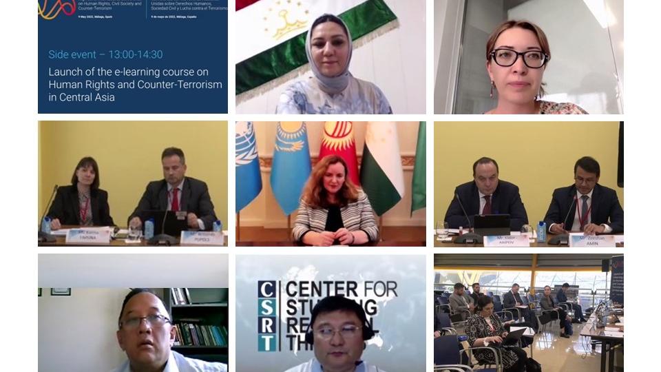 9 мая 2022 года, в преддверии Международной конференции высокого уровня по правам человека, гражданскому обществу и противодействию терроризму, которая проходит в г. Малага, Испания, РЦПДЦА в партнерстве с Контртеррористическим управлением Организации Объединенных Наций (КТУ ООН) запустил онлайн курс обучения в области защиты и продвижения прав человека и верховенства закона в контексте противодействия терроризму в Центральной Азии. С этой целью было организовано в гибридном формате параллельное мероприятие с участием представителей стран Центральной Азии и других государств-членов, а также структур ООН.